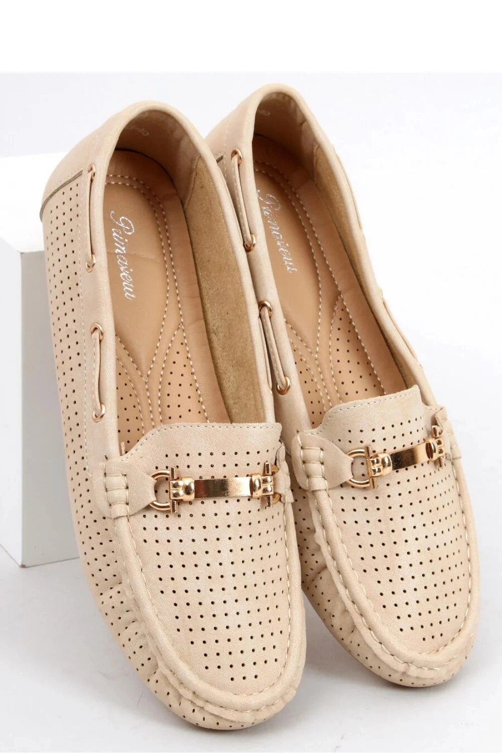 Dámské ažurové mokasíny. Tento nadčasový model má elegantní střih s jemným prošíváním a stylovou zlatou ozdobou. Každodenní pohodlí zajišťuje měkká polstrovaná stélka. Čekají na vás : ) Vnější materiál ? ekologická kůže.