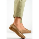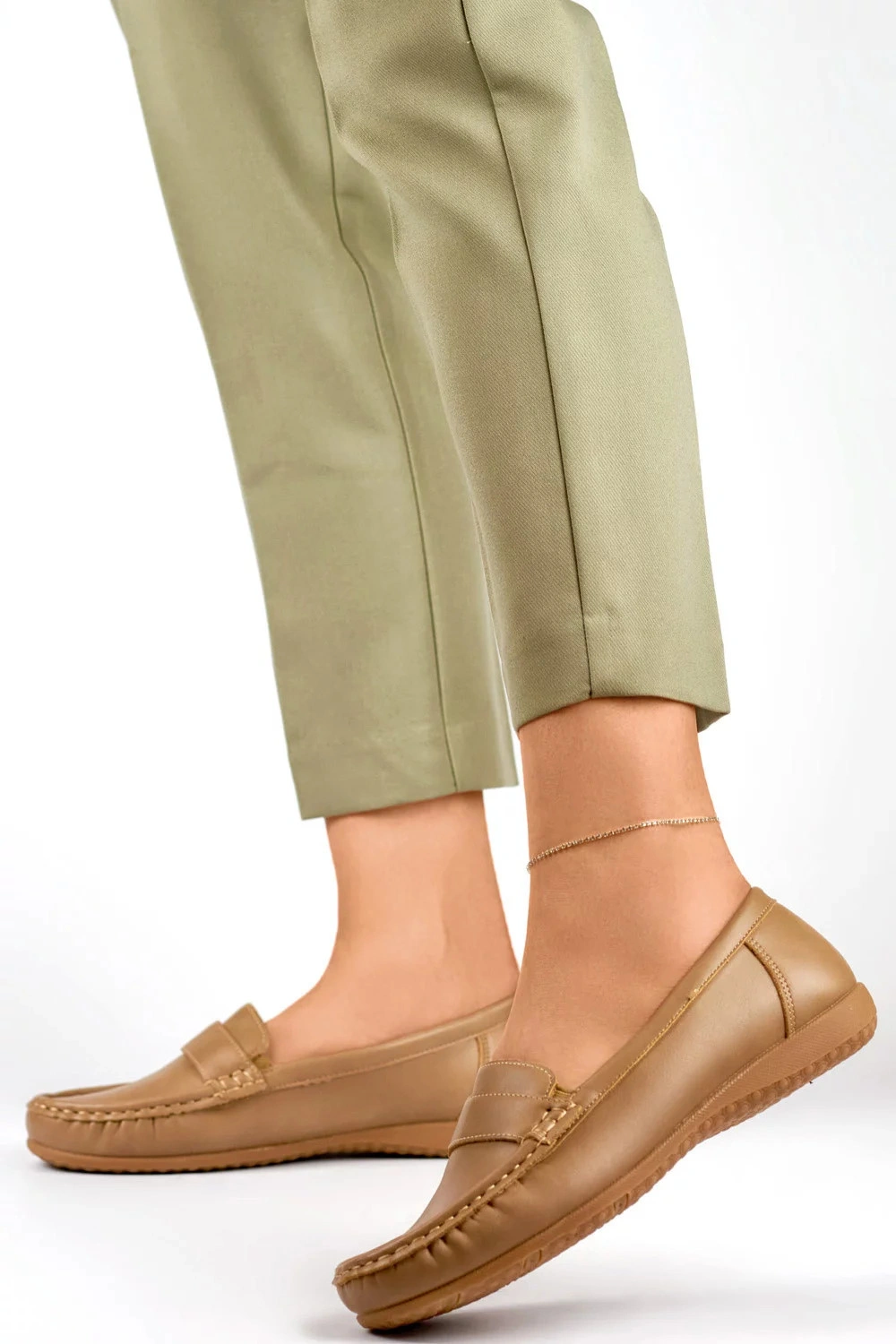 Tyto mokasíny v jemném béžovém odstínu jsou ideální volbou pro ženy, které chtějí spojit pohodlí s nadčasovým stylem. Svršek z kvalitní ekokůže dodává botám elegantní vzhled a zároveň je šetrný k životnímu prostředí. Tyto béžové mokasíny, vytvořené s ohledem na ženy, jsou ideální na jaro, léto i po celý rok a dodají elegantní nádech různým vzhledům. Díky kožené stélce pro větší pohodlí jsou mokasíny praktickou volbou pro každodenní nošení. Tyto mokasíny mají kulatou špičku, což jim dodává klasický vzhled a činí je univerzálními pro různé situace. Béžová barva dodává botám lehkost a jemnost a zároveň umožňuje jejich snadné kombinování s různým oblečením. Tyto béžové mokasíny jsou dokonalou kombinací elegance a pohodlí, perfektním doplňkem dámského šatníku pro každou příležitost.