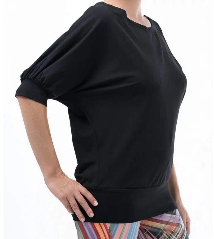 Dámské černé triko s 3/4 netopýřím rukávem A6101 - Litex
