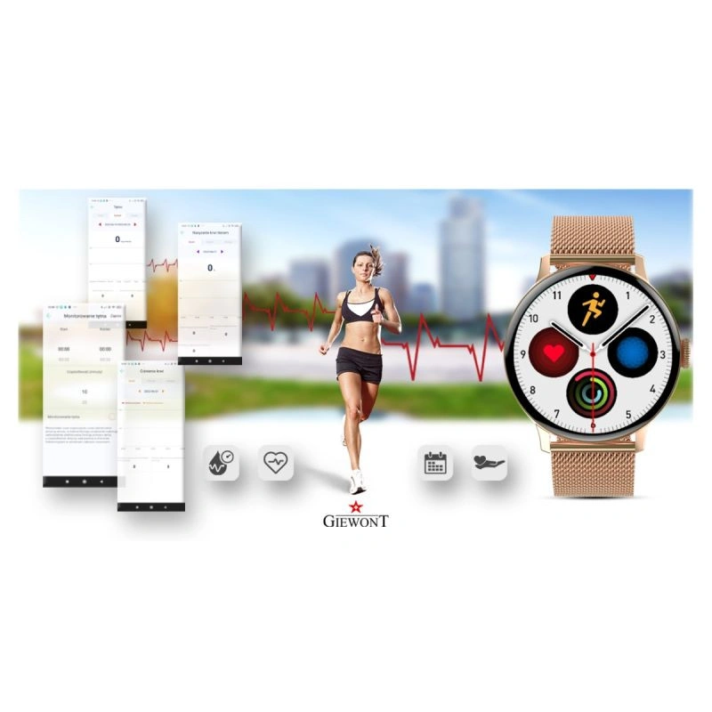 Díky senzoru můžete kdykoli měřit nebo provádět měření: krevního tlaku, srdečního tepu nebo saturace - obsahu kyslíku v krvi ve vašem těle. Výsledky můžete sledovat při jakékoli fyzické aktivitě. Ať už jedete na kole, běháte, nebo jste prostě v práci či odpočíváte. Vaše chytré hodinky Giewont se stanou osobním asistentem, který se bude každý den starat o vaše zdraví.