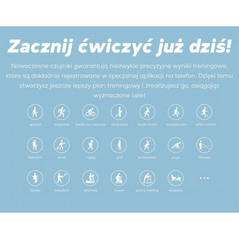 Nowoczesny smartwatch łączący inteligentne technologie z wyjątkowym designem: rozmowami Bluetooth, Asystentem głosowym, zaawansowanym monitoringiem zdrowia oraz nowoczesnymi czujnikami dla precyzyjnych wyników treningowych.Ekran o żywych kolorach i wysokim kontraście sprawia, że każda informacja jest czytelna i wygląda imponująco.Dzięki asystentowi głosowemu i inteligentnym powiadomieniom jesteś zawsze na bieżąco, niezależnie od tego, czy trenujesz, pracujesz, czy relaksujesz się po długim dniu. Mnóstwo trybów sportowych oraz czujniki monitorujące takie jakpulsometr, akcelerometr i monitoring snu, dostarczają precyzyjnych danych o treningach i regeneracji.W biegu między obowiązkami telefon może spokojnie zostać w torebce – Bluetooth Call, wbudowany mikrofon i głośnik pozwalają odbierać połączenia z poziomu nadgarstka, zapewniając wygodę i dyskrecję. Wydajna bateria 280 mAh zapewnia do 5 dni intensywnej pracy bez konieczności ładowania.