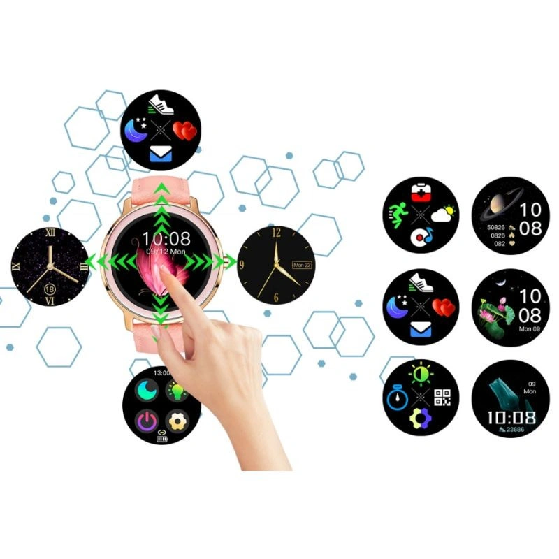 Wyświetlacz TFT IPS 1.1” z rozdzielczością 240×240 prezentuje się perfekcyjnie – wyraźny, dotykowy, responsywny. Do tego 7 motywów tarczy, animowane grafiki i opcja własnych projektów – wszystko, by dopasować zegarek do stylizacji, nastroju i okazji.
