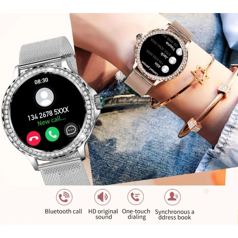 Dotknete se obdélníkového plného displeje MULTItouch TFT IPS a jediným pohybem si vyberete ciferník, který nejlépe odráží vaši dnešní náladu - klasická elegance, nebo nádech moderního minimalismu? Zirkony na obálce se při každém pohybu jemně třpytí a dodávají hodinkám jemný šperkový půvab.