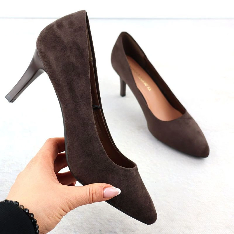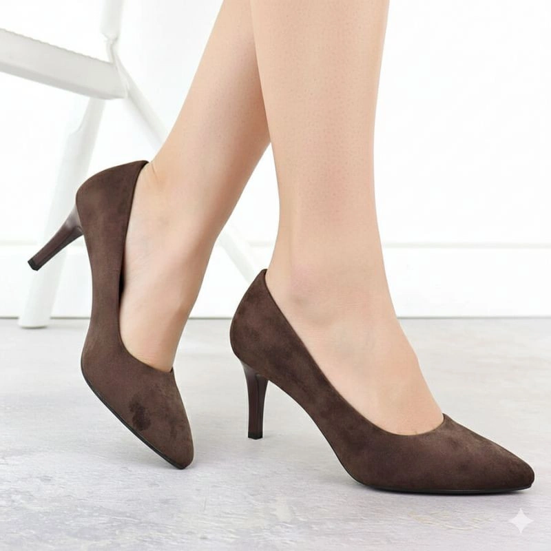 Popis Dámské čokoládové semišové lodičky na jehlovém podpatku Sergio Leone 1336