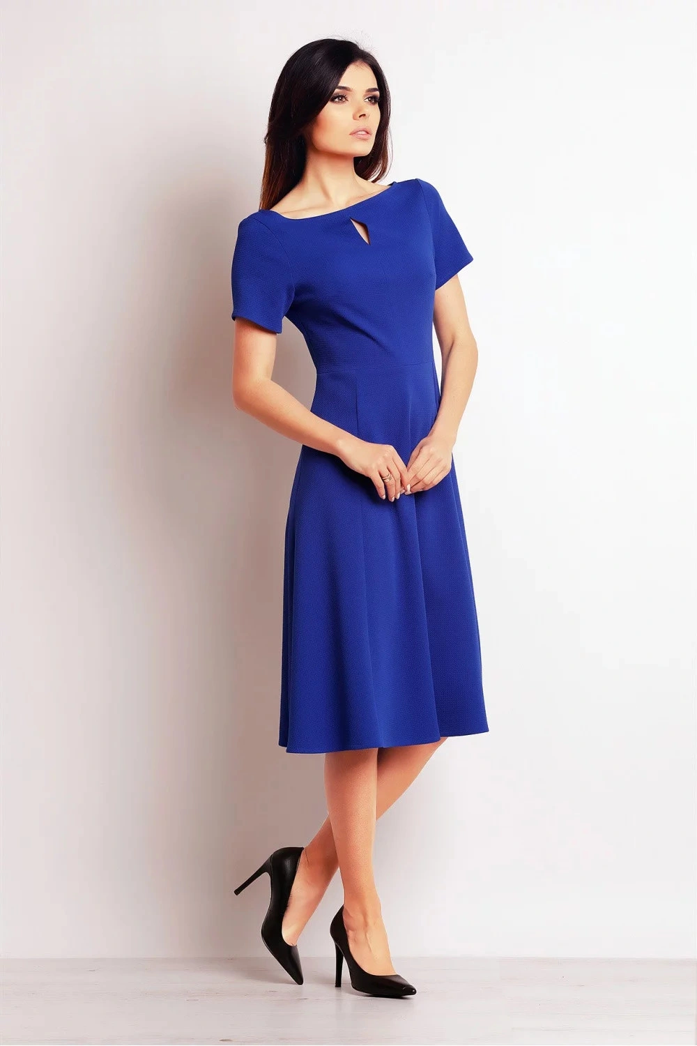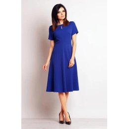 Zajímavé šaty s mírně rozšířeným střihem. Jemně řasené, díky čemuž materiál pěkně přiléhá k postavě. Výstřih je zdánlivě rovný, ale zdobený malým rozparkem. Šaty mají vzadu skrytý zip. Materiál je měkký a pohodlný a má zajímavou strukturu. Ideální do práce nebo na večerní procházku. <Složení materiálu: 95 % polyester, 5 % elastan