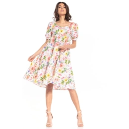 Šaty S213 Romantický květinový potisk a vzdušná šifonová tkanina v oblíbeném áčkovém střihu s elasti