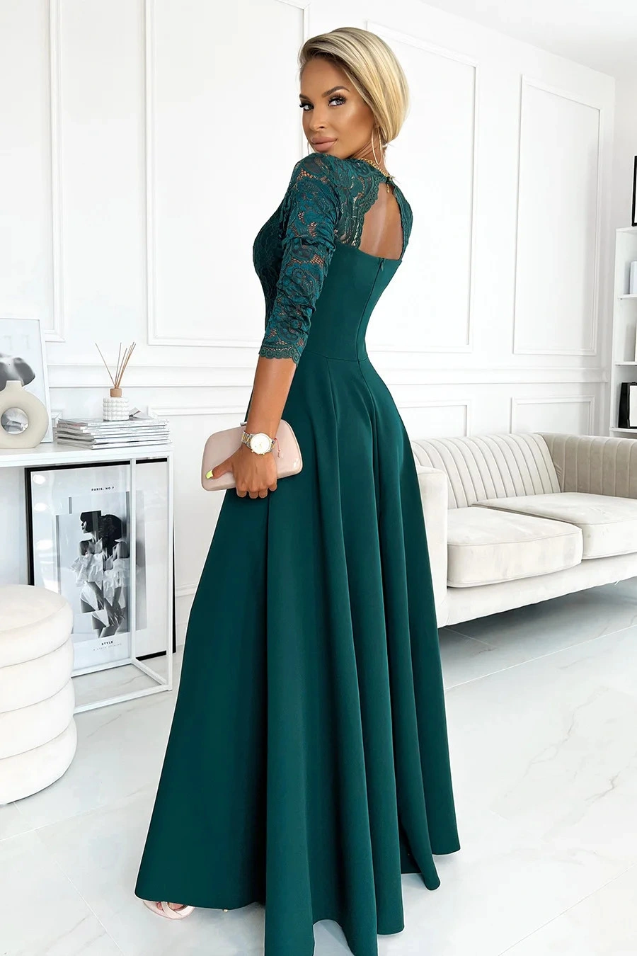 Amber - to jsou elegantní dlouhé dámské krajkové šaty s dekoltem.