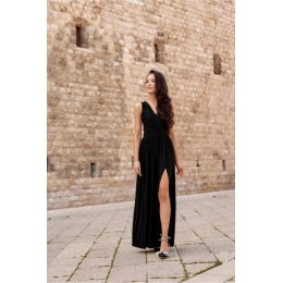 Brokátové maxi šaty se zavazováním na zádech jsou skvělou volbou mezi našimi večerními šaty. Šaty jsou ohromující díky drobným třpytivým skvrnám v látce. Na slunci nebo ve světle reflektorů se budou krásně třpytit ve všech možných barvách. Brokátové maxi šaty se zavazováním na zádech jsou vyrobeny z krásné třpytivé látky, která nám dodá oslnivý vzhled. Šaty mají obálkový výstřih a rozparek na nohou pro větší smyslnost. Šaty mají na zádech ozdobné kostice. Zapínají se na krytý zip. Večerní šaty sluší zejména ženám, které rády září a cítí se jako skutečné hvězdy. Dlouhé šaty se budou hodit na všechny typy oslav, jako jsou svatby, přijímání a firemní akce. Výrobek je vyroben a ušit v Polsku.