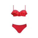Dámské dvojdílné plavky značky Self. Vrchní díl je vyztužený kosticí spolu s nastavitelnými ramínky. Ozdobený je volánkem.