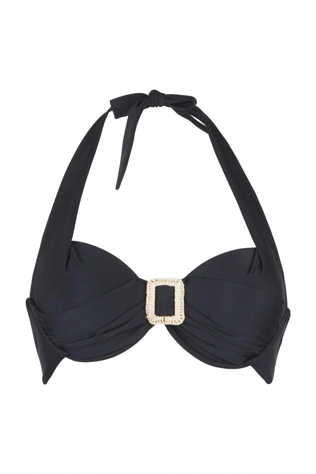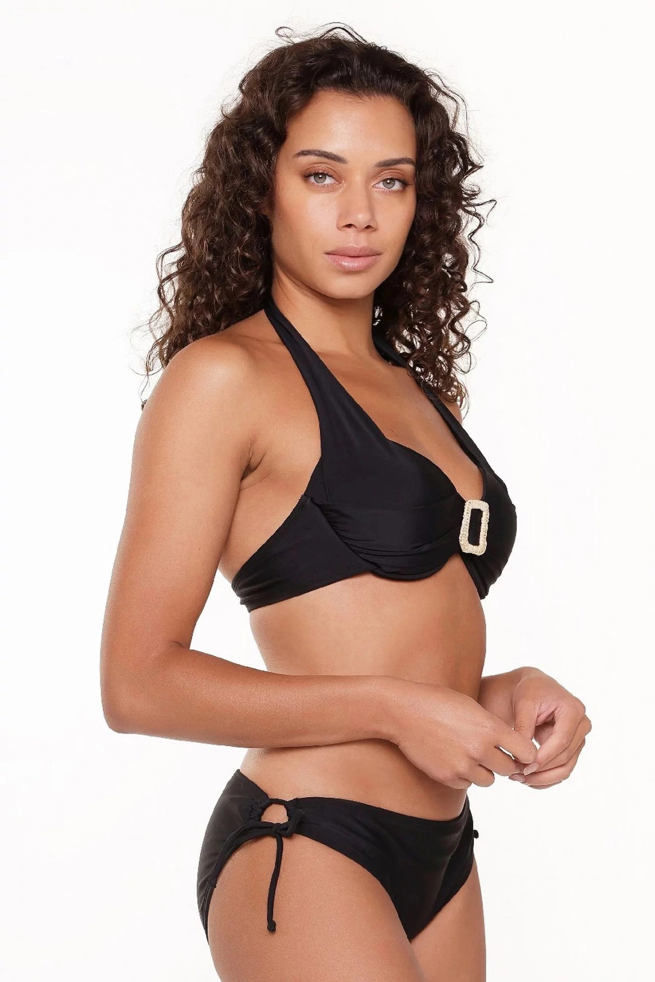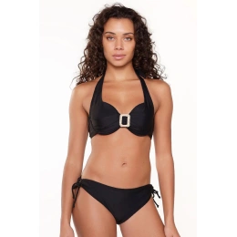 Dámské dvoudílné plavky 7214 black LingaDore - černá barva - košíčky zdobené řasením - mezi košíčky spona - zavazování za krkem nebo na zádech - kalhotky nižšího střihu - zavazování na bocíchMateriálové složení: 80% polyamid + 20% elastan