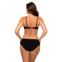Dvoudílné plavky z elastické italské tkaniny Carvico Tessuti. Obsahuje podprsenku bandeau, která smyslně tvaruje a zvětšuje prsa, a spodní díl, který opticky prodlužuje nohy. Podprsenka se zapíná na zádech, ramínka nejsou odepínací. Kalhotky se sexy rozparkem na přední straně.