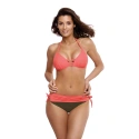 Podprsenka s košíčky vyztuženými jemnou pěnou, s push-upkou umístěnou trvale v modelu (nelze vyjmout), pěkně shrnuje prsa, přibližuje je k sobě a opticky je zvětšuje, čímž zároveň vytváří hluboký, smyslný dekolt. Ramínka uprostřed tento sexy dojem umocňují. Push-upka je přítomna v každé velikosti modelu. Podprsenka se zavazuje za krkem i na zádech. Součástí kompletu jsou kalhotky s ozdobným zavazováním na bocích, vkládané tradičně (zavazování je ozdobným prvkem). Elegantní barvy, které dokonale ladí s letním klimatem.