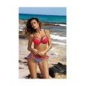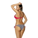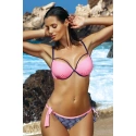 Výjimečné plavky s hladkou podprsenkou, ramínky (gumičkami) ve výstřihu a vzorovanými kalhotkami, se střihem nejmódnějších "brazilky" této sezóny. Hot! Žhavá novinka! Plavky se dodávají ve dvou krásných barvách - pastelově růžové a nektarinkové. Podprsenka je vyztužená jemnou pěnou, ve spodní části má kostice a sexy push-up vycpávky, díky nimž získáte mimořádně smyslný dekolt a samotná prsa budou výrazně blíže k sobě, nadzvednutá a opticky zvětšená. Konstrukce navržená pro malé a střední poprsí vypadá velmi atraktivně. Výstřih s módními pruhy je sladkým lákadlem pro mužské pohledy. Nastavitelné popruhy, pohodlné zapínání na přezku. Vzorované kalhotky s kontrastním lemováním, které dále přechází v koketní vázačky na obou stranách boků. Brazilský střih, který je v této sezóně nejmódnější. Abyste dosáhli plného brazilského efektu, vyhrňte kalhotky výrazně nahoru, aby jejich sexy tvar svůdně zdobil zadeček.