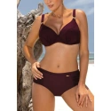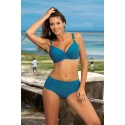 Dvoudílné plavky ve sportovním stylu z italské tkaniny Carvico Tessuti. Podprsenka bez push-up efektů, s kosticemi ve spodní části, pro větší poprsí. Podprsenka s hlubokými, pohodlně vyztuženými košíčky, zapínání na zádech. Nastavitelné popruhy, neodnímatelné. Kalhotky jsou hladké, podšité a mají pohodlný vyšší střih. Polský výrobek. Tip: objednejte si větší velikost než obvykle.