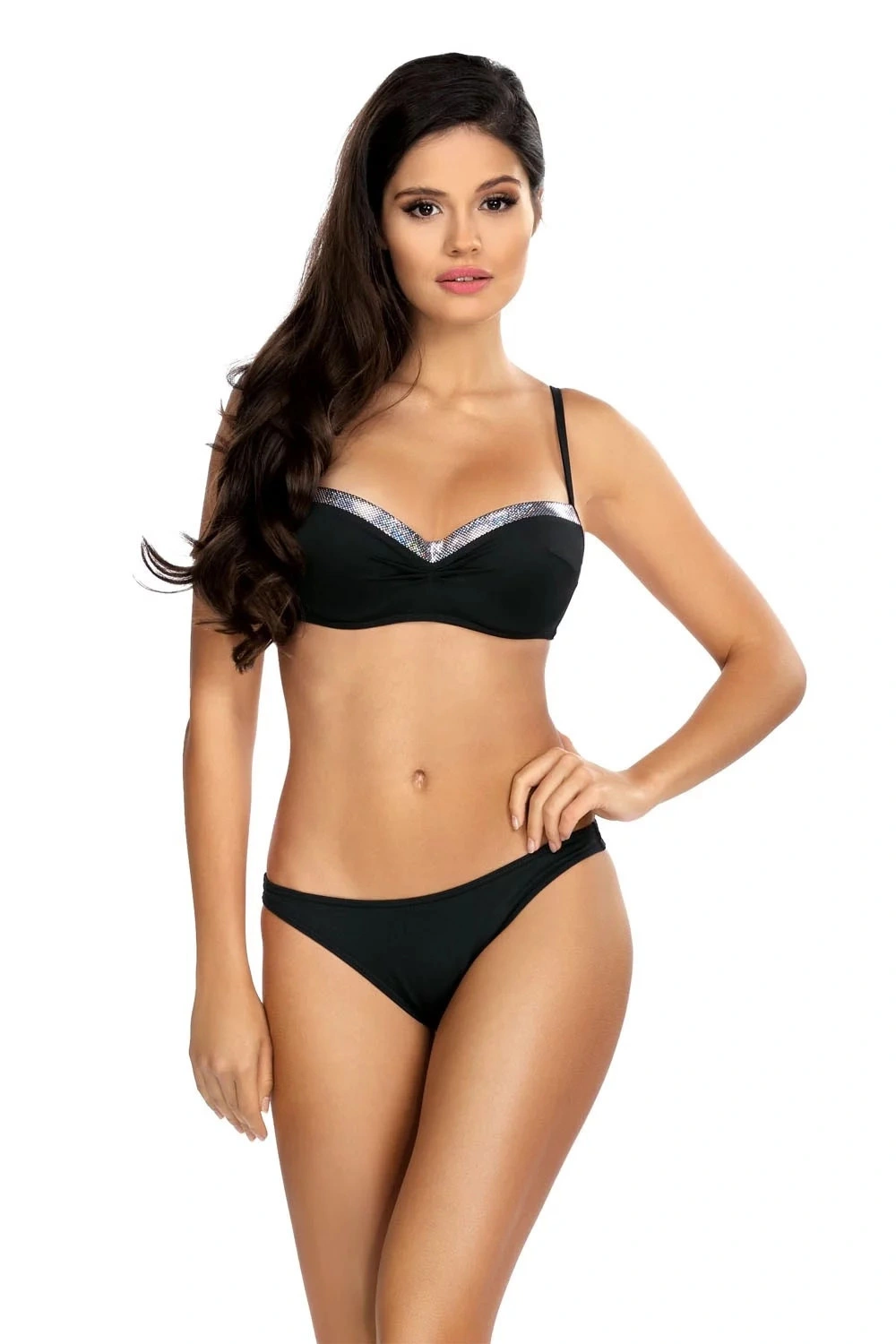 Dámské dvoudílné plavky L2361/1 Lorin - příjemný plavkový materiál, který rychle schne - podprsenka má vyztužené košíčky - v dekoltu ozdobené flitry - s kosticemi - klasické plavkové kalhotky - pružné nohavičky i pas - kolekce 2021
