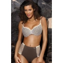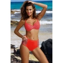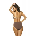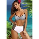 Plavky jsou vyrobené z hladké látky a ažurové síťoviny. Podprsenka má vytvarované košíčky. Mezi košíčky je pěkné nařasení. Ramínka je možné nastavit, ale nelze je odepnout. Podprsenka se vzadu zapíná pohodlným klipem. Kalhotky mají vyšší střih.