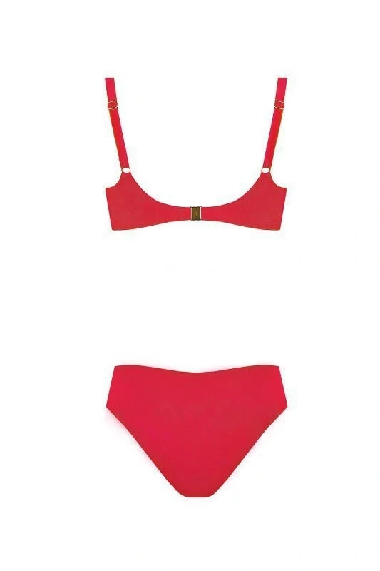 Dámské dvoudílné plavky, vrchní díl vyztužený, ramínka na posouvání, spodní díl klasického střihu.