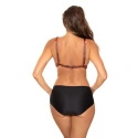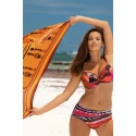 Dvoudílné plavky pro větší poprsí s hlubokými a pohodlnými košíčky. Podprsenka bez push-up, zapínání na zádech. Vyšší kalhotky s pohodlným střihem. Střih zakrývá bříško. Vyrobeno z italské tkaniny Carvico Tessuti. Polský výrobek. Tip: objednejte si větší velikost než obvykle.