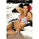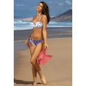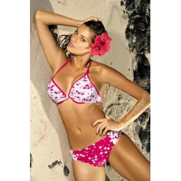 Roztomilé hvězdy a design přímo z USA... Ať už si vyberete jakoukoli pláž, v těchto plavkách se vám určitě zalíbí. Velmi pěkná konstrukce šálků. Jsou silně vyztužené a speciálně tvarované (díky tomu vypadají prsa obzvlášť hypnoticky). Spodní část je vyztužená. Ve velikostech S, M, L jsou součástí balení push up košíčky. Výsledek? Silné shromažďování poprsí, sexy zvedání a zvětšování. Velikosti XL, 2XL mají pouze vyztužené košíčky, bez push up - také velmi smyslně zdůrazňují ženské křivky. Uprostřed je (odnímatelná) visačka v podobě několika stříbrných hvězdiček. Velmi působivé barvy. Podprsenka se zavazuje za krkem a na zádech. Kalhotky velmi půvabně zvýrazňují linii boků. Zadní strana hladká (tmavě modrá). Výrobek nejvyšší kvality, potvrzený hologramem, ušitý z italské tkaniny Carvico Tessuti, odolné vůči slunečnímu záření a síle tření písku, dokonale kryjící tělo, rychleschnoucí.