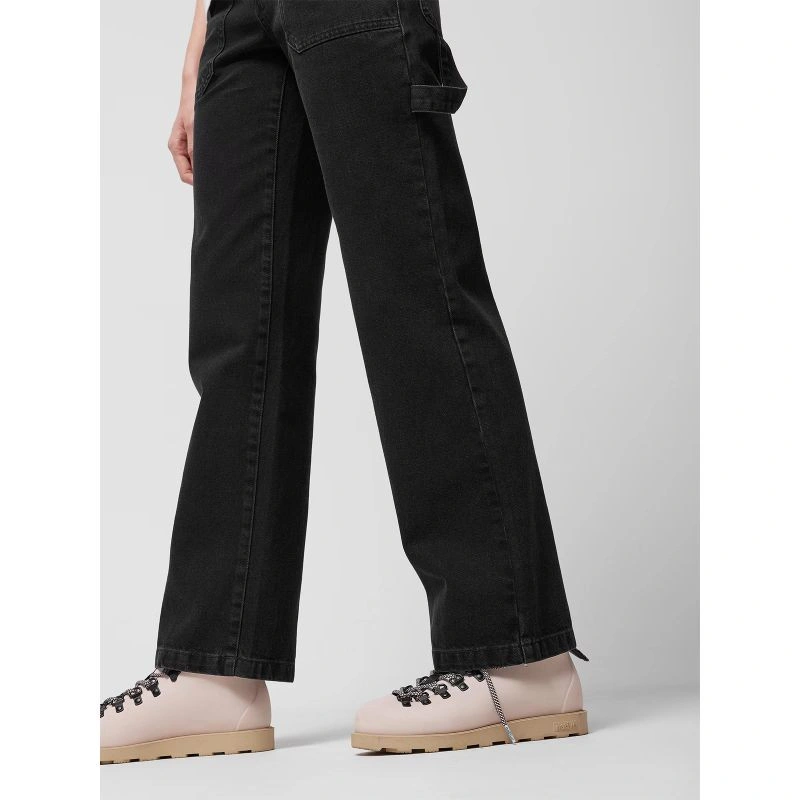 Džínové kalhoty s vysokým sedem, pasem s poutky na pásek, zapínáním na zip a knoflík, velkými otevřenými kapsami na přední straně, třemi kapsami na zadní straně a poutkem inspirovaným pracovními kalhotami. Jsou vyrobeny z bavlněné tkaniny, materiál byl opraný, takže není tuhý, dobře sedí a je příjemný na dotek. Na poutku na pásek je vyšité jedinečné číslo modelu, které označuje střih a roční období džínů.