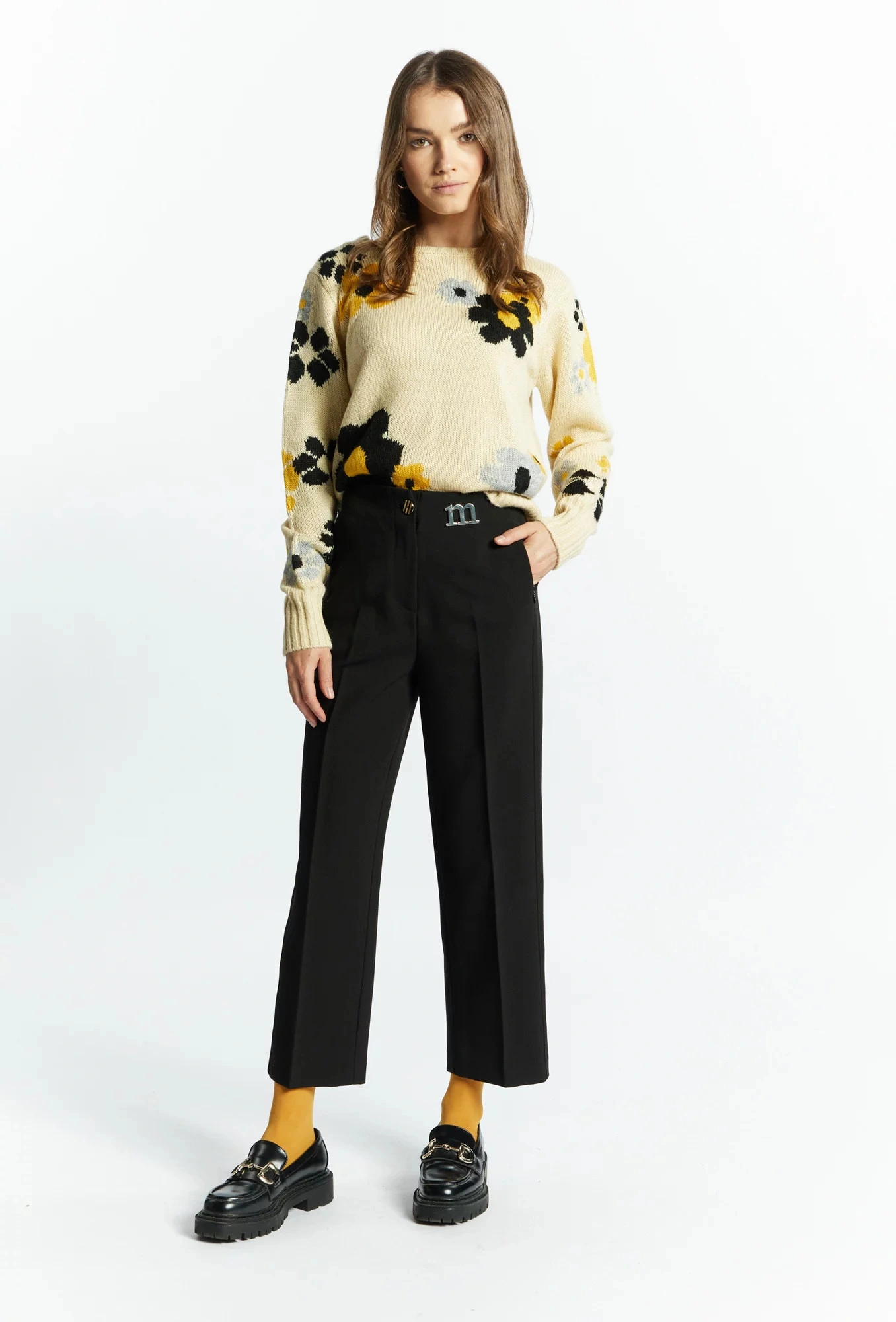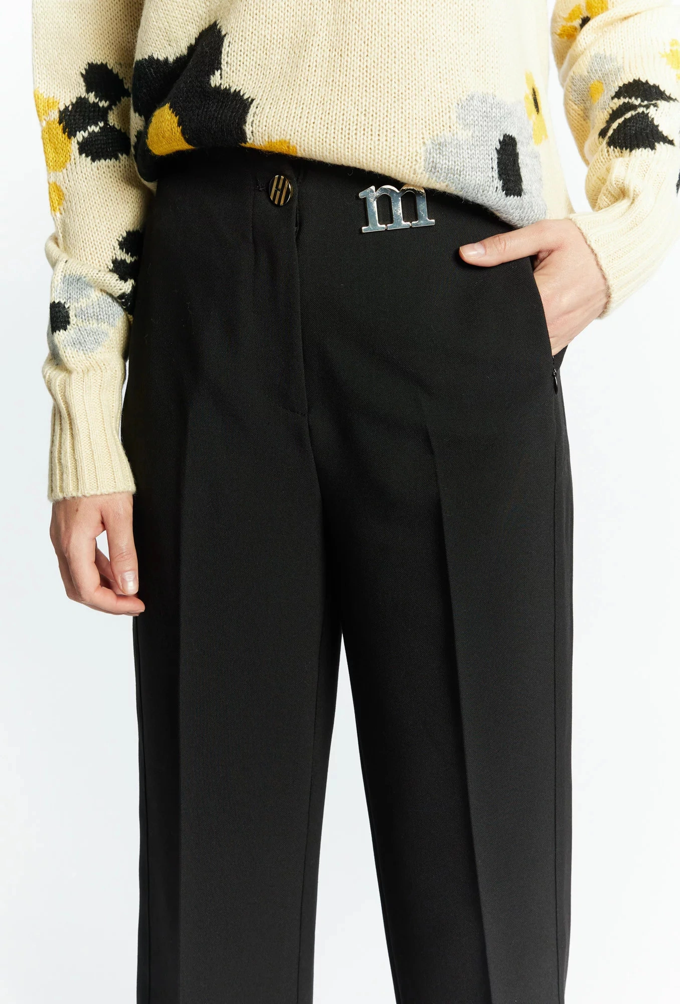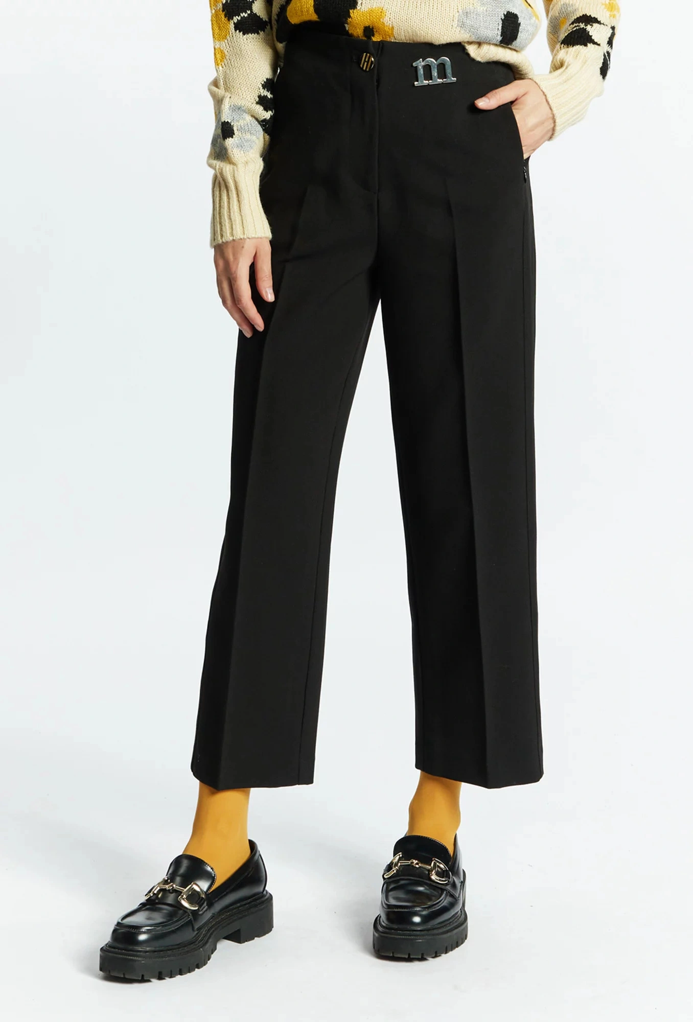Elegantní dámské kalhoty s logem Monnari. Kalhoty o délce 7/8 s rovnou nohavicí se zapínají na zip a knoflík. Kalhoty s krytými kapsami se zapínáním na zip. Ke kalhotám doporučujeme zvolit klasickou bílou halenku. Modelka na obrázku je 177 cm vysoká a má velikost 36.