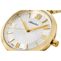 Tyto dámské hodinky s průměrem 30 mm a tloušťkou 7 mm jsou dokonalou kombinací jemnosti a vytříbeného stylu. Jejich lehká konstrukce (41 g) a elegantní náramek zajišťují výjimečný komfort při nošení, díky němuž se hodinky téměř rozplývají na kůži. Díky kompaktním rozměrům zdůrazňují ženské zápěstí, aniž by ho zahlcovaly, a vytvářejí tak dokonalý akcent k jakémukoli stylu. Jsou výjimečnou volbou pro ženy, které oceňují jemnou eleganci a od svých hodinek očekávají klasický design.