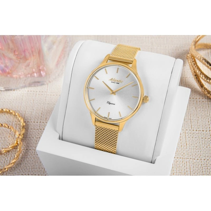 Dámské hodinky Atlantic Elegance jsou odvážnou kombinací moderního stylu a ženské elegance. Výrazný ciferník s rafinovanými detaily jim dodává charakter, zatímco ocelové pouzdro a pevný náramek zaručují odolnost a pohodlí při každodenním nošení. Jedná se o hodinky vytvořené pro ženu, která ráda zdůrazňuje své sebevědomí a osobitý styl. Hodinky Atlantic jsou ideální pro každodenní stylizaci i speciální příležitosti, jsou nejen praktickým doplňkem, ale také symbolem třídy a prestiže.