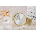 Tento model z dámské kolekce Calvin Klein zaujme jemností tvaru a rafinovanou jednoduchostí. Je ideální volbou pro ženy, které oceňují klid luxusu, jemnost detailů a nadčasový tvar. Světlý, zářivě kartáčovaný ciferník jemně odráží světlo a vytváří efekt jemného prozáření. Detaily, jako jsou štíhlé ručičky a minimalistické číslice 12 a 6, dodávají kompozici lehkost a eleganci, zatímco hřejivý síťovaný náramek zlaté barvy obepíná zápěstí s výjimečnou lehkostí jako hedvábná látka. Pro ty, kteří vědí, že to, co je nejjednodušší, je někdy nejkrásnější.