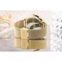Jemný síťovaný náramek dodává stylingu jemnost a smyslnost. Je vyroben z vysoce kvalitní nerezové oceli a spojuje eleganci s odolností a pohodlím při nošení. Díky smyslnému charakteru tohoto zlatého náramku dokonale padne na ženské zápěstí, jemně ho obepíná a zdůrazňuje jeho ženskost. Celek dotváří decentní logo na zapínání náramku, které je exkluzivním akcentem.