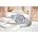 Ten zegarek nie tylko mierzy czas – on opowiada historię. Delikatnie połyskująca srebrna bransoleta i geometryczna koperta to ukłon w stronę lat 80., ale wystarczy jedno spojrzenie na tarczę, by zrozumieć, że to czas w zupełnie nowej odsłonie. Tło pełne pastelowych kwiatów wygląda, jakby zostało namalowane akwarelą – subtelne róże, lawendy i błękity zamknięte w szklanym lustrze nostalgii. A jednak pod tą romantyczną powierzchnią kryje się precyzja: stoper, alarm, podświetlenie – funkcje, które są zawsze wtedy, gdy ich potrzebujesz. LA680WA-2CDF to zegarek dla kobiet, które łączą codzienny pośpiech z uważnością na detale. Dla tych, które kochają styl vintage, ale nigdy nie tracą współczesnego rytmu. To nie jest zegarek do szuflady – to biżuteria czasu, którą nosisz, bo chcesz, nie bo musisz.