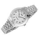Je vyroben z kvalitní nerezové oceli s dvojím typem povrchové úpravy: matnou uprostřed a kartáčovanými okraji, což dodává hodinkám jedinečný vzhled. Nerezová ocel je materiál odolný vůči mechanickému poškození, díky čemuž náramek dobře odolává každodennímu používání a dlouho si zachovává svůj estetický vzhled. Hodinky jsou vybaveny speciální sponou, která umožňuje upravit délku náramku, aniž byste museli články sundávat. Náramek má pevné, zacvakávací zapínání, které zabraňuje náhodnému rozepnutí hodinek, což je důležité zejména při aktivních situacích nebo intenzivnějších pohybech ruky.