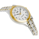 Je vyroben z kvalitní nerezové oceli s dvojím typem povrchové úpravy: matnou uprostřed a kartáčovanými okraji, což dodává hodinkám jedinečný vzhled. Nerezová ocel je materiál odolný vůči mechanickému poškození, díky čemuž náramek dobře odolává každodennímu používání a dlouho si zachovává svůj estetický vzhled. Hodinky jsou vybaveny speciální sponou, která umožňuje upravit délku náramku, aniž byste museli články sundávat. Náramek má pevné, zacvakávací zapínání, které zabraňuje náhodnému rozepnutí hodinek, což je důležité zejména při aktivních situacích nebo intenzivnějších pohybech ruky.