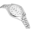 Je vyroben z vysoce kvalitní nerezové oceli s dvojím typem povrchové úpravy: matnou uprostřed a kartáčovanými okraji, což hodinkám dodává jedinečný vzhled. Nerezová ocel je materiál odolný vůči mechanickému poškození, díky čemuž náramek dobře odolává každodennímu používání a dlouho si zachovává svůj estetický vzhled. Hodinky jsou vybaveny speciální sponou, která umožňuje upravit délku náramku, aniž byste museli odstraňovat články. Náramek má pevné, zacvakávací zapínání, které zabraňuje náhodnému rozepnutí hodinek, což je důležité zejména při aktivních situacích nebo intenzivnějších pohybech ruky.