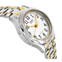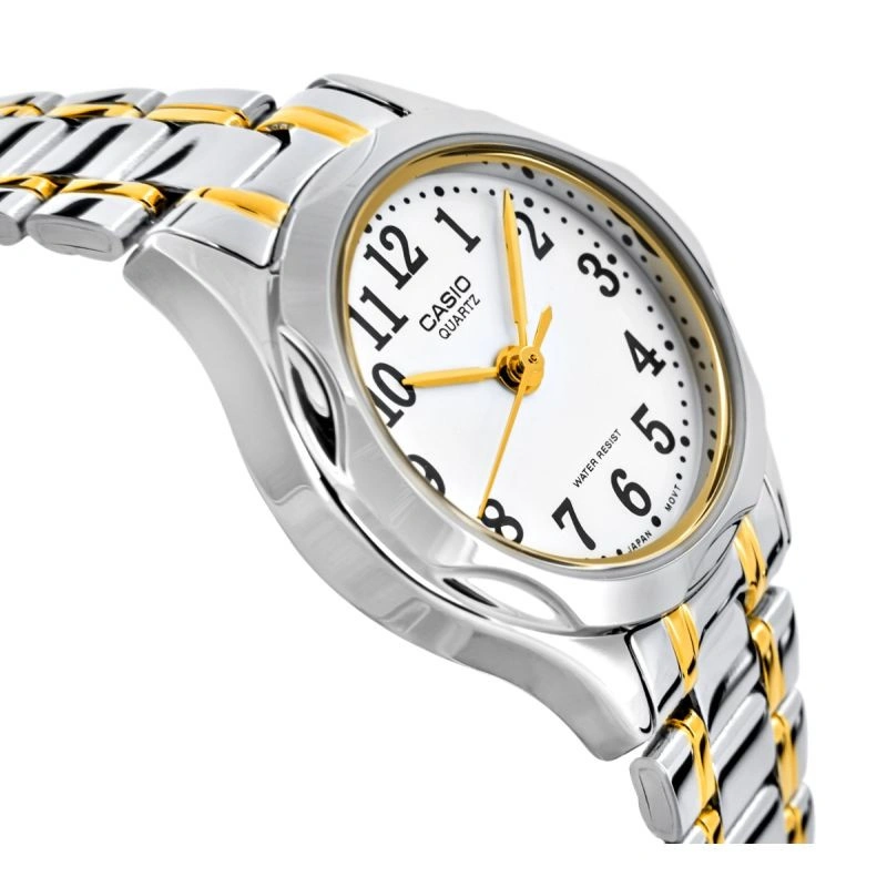 Sněhově bílý ciferník s výraznými černými číslicemi je kombinací minimalismu a elegance, díky níž jsou hodinky mimořádně čitelné a funkční. Zlaté ručičky a jemné detaily dodávají hodinkám ušlechtilý nádech, zatímco lesklý stříbrno-zlatý náramek jim dodává šperkový půvab a krásně se hodí k jakémukoli stylu. Štíhlé pouzdro s jemně zaoblenými hranami dokonale padne na ženské zápěstí a zdůrazňuje jeho jemnost a půvab. Každý detail těchto hodinek CASIO byl navržen s ohledem na ženskou jemnost a klasickou krásu.