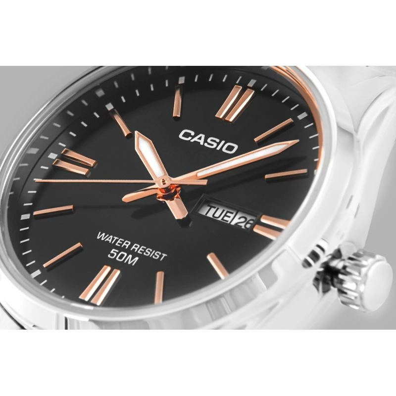Damski zegarek CASIO LTP-1335D to harmonijne połączenie subtelności i nowoczesnej elegancji. Srebrna bransoleta o lekkim, biżuteryjnym połysku delikatnie otula nadgarstek, dodając blasku każdemu ruchowi. Prosta, przejrzysta tarcza emanuje spokojem – tak jak lubisz, gdy wszystko ma swoje miejsce i rytm. Dyskretna funkcja datownika z dniem tygodnia troszczy się o Twoją codzienność, a wodoodporność do 50 (5 BAR) metrów sprawia, że możesz mieć go zawsze przy sobie – niezależnie od planów i pogody. To zegarek dla kobiety, która ceni jakość, lekkość i świadome wybory.Delikatny, ale pełen charakteru. Elegancki, ale nienachalny. Będzie doskonałym dopełnieniem białej koszuli, zwiewnej sukienki i ulubionych jeansów z wysokim stanem – bo to Ty nadajesz ton swojemu stylowi.