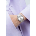 Jeho hladký, jemně třpytivý povrch harmonicky obepíná zápěstí a zajišťuje celodenní pohodlí. Díky přesnémuobrysu dokonale přiléhá k ženské ruce, jemně zdůrazňuje štíhlost zápěstí a dodává eleganci každému outfitu. Nerezová ocel v sobě spojuje odolnost i lehkost, díky čemuž jsou hodinky mimořádně pohodlné při nošení. Design náramku dokonale vyvažuje luxus a každodenní jednoduchost, což z tohoto modelu činí ideální hodinky pro večerní vycházky i každodenní nošení, doplněné logem Paul Lorens na zapínání náramku.