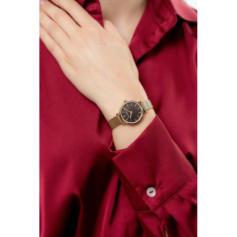 Jemný náramek mesh dodává stylingu nádech jemnosti a smyslnosti. Je vyroben z vysoce kvalitní nerezové oceli a spojuje eleganci s odolností a pohodlím při nošení. Smyslnost tohoto zlatého náramku znamená, že dokonale sedí na ženském zápěstí, jemně ho obepíná a zdůrazňuje jeho ženskost. Tu doplňuje decentní logo na zapínání náramku, které mu dodává exkluzivní nádech.