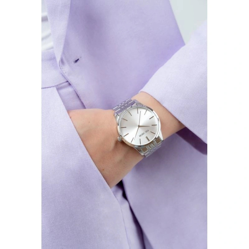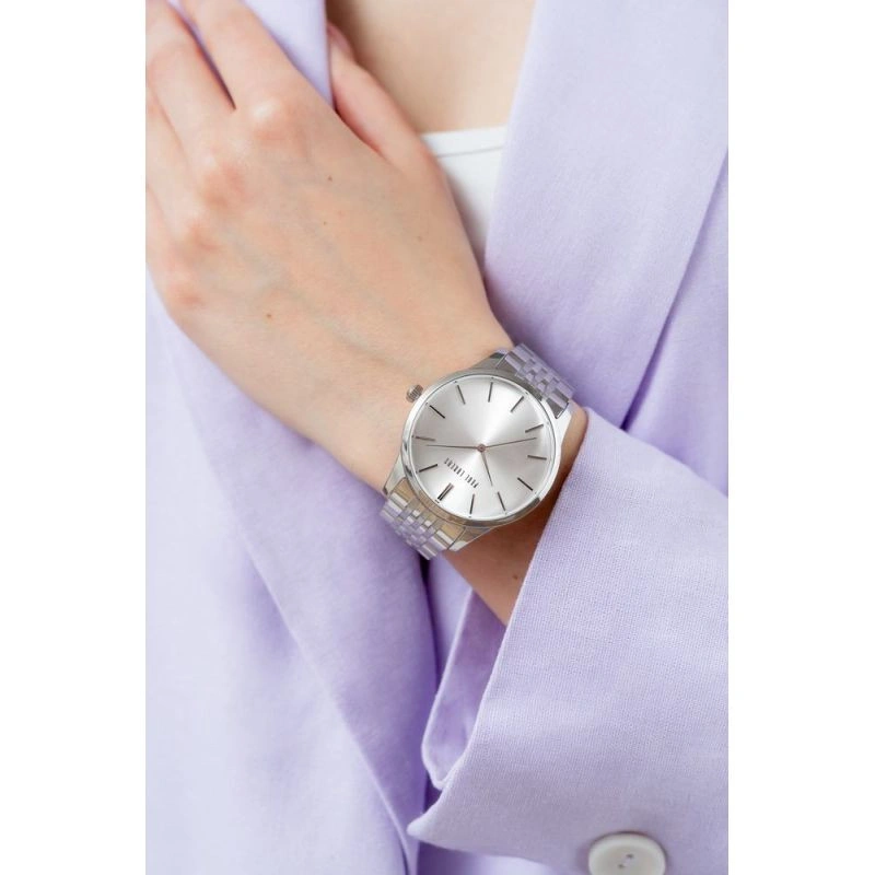 Jeho hladký, jemně třpytivý povrch harmonicky obepíná zápěstí a zajišťuje celodenní pohodlí. Díky přesnémuobrysu dokonale přiléhá k ženské ruce, jemně zdůrazňuje štíhlost zápěstí a dodává eleganci každému outfitu. Nerezová ocel v sobě spojuje odolnost i lehkost, díky čemuž jsou hodinky mimořádně pohodlné při nošení. Design náramku dokonale vyvažuje luxus a každodenní jednoduchost, což z tohoto modelu činí ideální hodinky pro večerní vycházky i každodenní nošení, doplněné logem Paul Lorens na zapínání náramku.