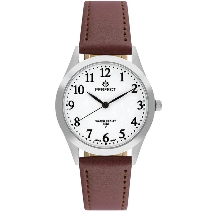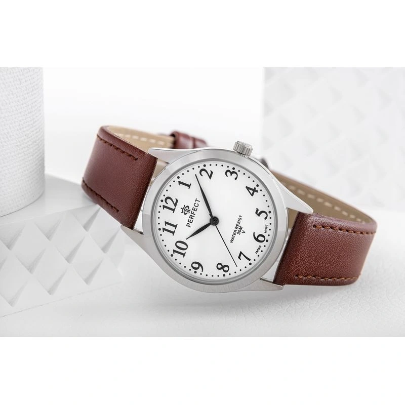 Kožený řemínek těchto hodinek je kvintesencí třídy a pohodlí. Je vyroben z nejkvalitnějšího materiálu, pohodlně se přizpůsobí zápěstí a nabízí nejen odolnost, ale také elegantní vzhled. Jeho měkkost poskytuje pohodlí při každodenním nošení, zatímco jeho dokonalá povrchová úprava podtrhuje osobitý styl značky Perfect.