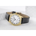 Tyto hodinky jsou opravdovým skvostem, který v sobě spojuje luxus a moderní styl. Zlatý obal decentně obepíná bílý ciferník, který vyzařuje čistotu. Černé indexy a ručičky vytvářejí fenomenální kontrast, zatímco černá vteřinovka dodává dynamiku.