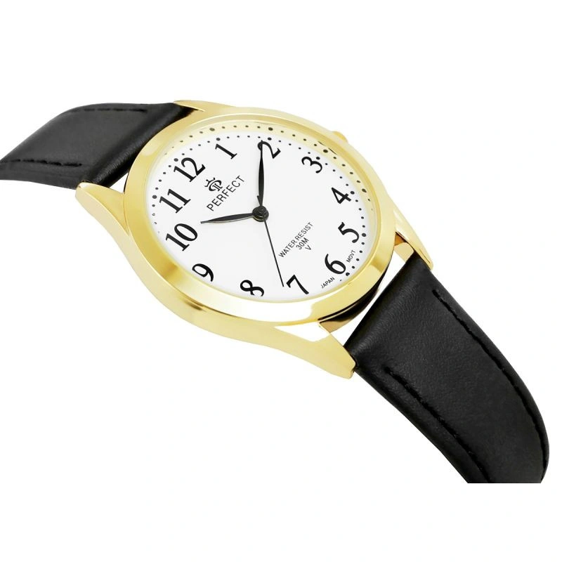 Kožený řemínek těchto hodinek je kvintesencí třídy a pohodlí. Je vyroben z nejkvalitnějšího materiálu, pohodlně se přizpůsobí zápěstí a nabízí nejen odolnost, ale také elegantní vzhled. Jeho měkkost poskytuje pohodlí při každodenním nošení, zatímco jeho dokonalá povrchová úprava podtrhuje osobitý styl značky Perfect.