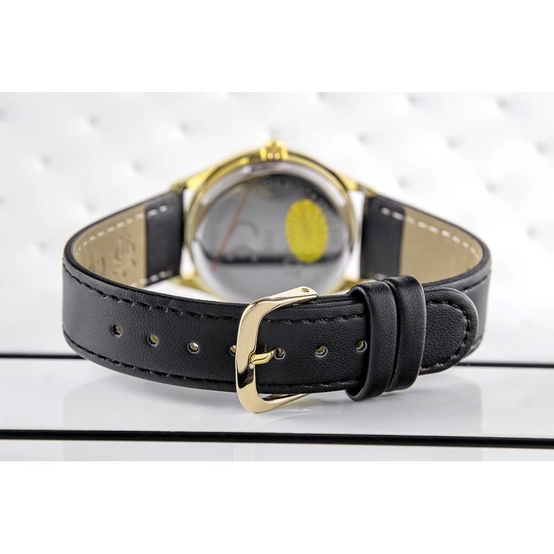 Tyto hodinky jsou dokonalým spojením luxusu a moderního stylu. Zlatý obal decentně obepíná bílý ciferník a vyzařuje eleganci a třídu. Černé indexy a ručičky vytvářejí výrazný kontrast a zajišťují vynikající čitelnost a přehlednost. Černé detaily dodávají celkovému designu charakter, zatímco černá vteřinová ručička vnáší do této harmonické kompozice dynamiku.
