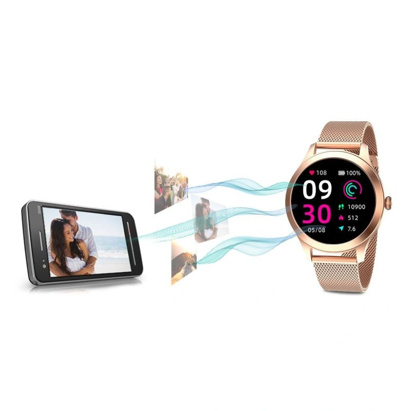 Díky připojení Bluetooth mezi chytrými hodinkami G.Rossi SW014G a vaším chytrým telefonem se od nynějška můžete těšit ze své oblíbené fotografie na domovské obrazovce chytrých hodinek. Stačí pořídit fotografii telefonem a nahrát ji do hodinek.