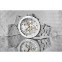 Model, který se jemně obtáčí kolem zápěstí a přitahuje pohled svým decentním půvabem. Perleťově bílý ciferník a postříbřené pouzdro tvoří harmonický základ, zatímco kubické zirkony září jako drobné drahokamy a dodávají hodinkám jedinečný půvab. Zlaté ručičky a vteřinová ručička dodávají teplo, zatímco stříbrný náramek dokonale doplňuje celek a vytváří hodinky, které jsou nejen praktickým, ale především krásným šperkem.
