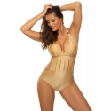 Jednodílné plavky s push-up efektem a krásným přirozeným vzhledem. Push-up malý, neodnímatelný z modelu. Podprsenka se zavazuje na zádech a za krkem ozdobným prošitím. Střih zakrývá bříško a má rozparky na bocích modelu. Vyrobeno z italské tkaniny Carvico Tessuti. Tip: objednejte si o číslo větší velikost než obvykle.