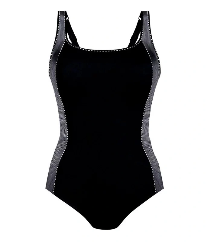 Jednodílné plavky Tassia v černé barvě s efektními barevnými listy na předním díle. Anita prsní pod