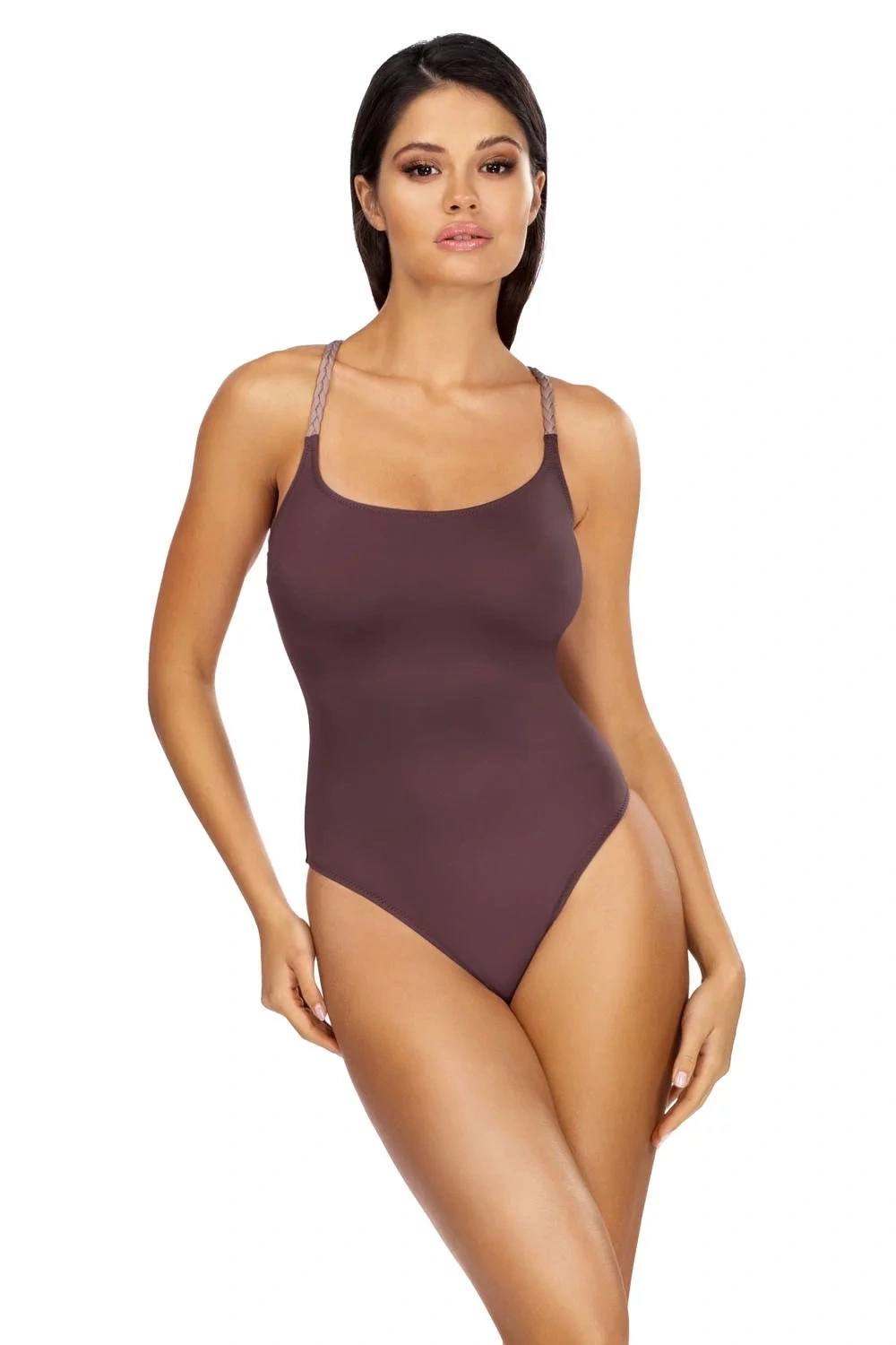 Dámské jednodílné plavky hnědo-fialové barvy L4424/1 - Lorin - krásný jednoduchý střih - perfektně zakryjí všechny nedostatky - jsou neuvěřitelně komfortní - kolekce 2021