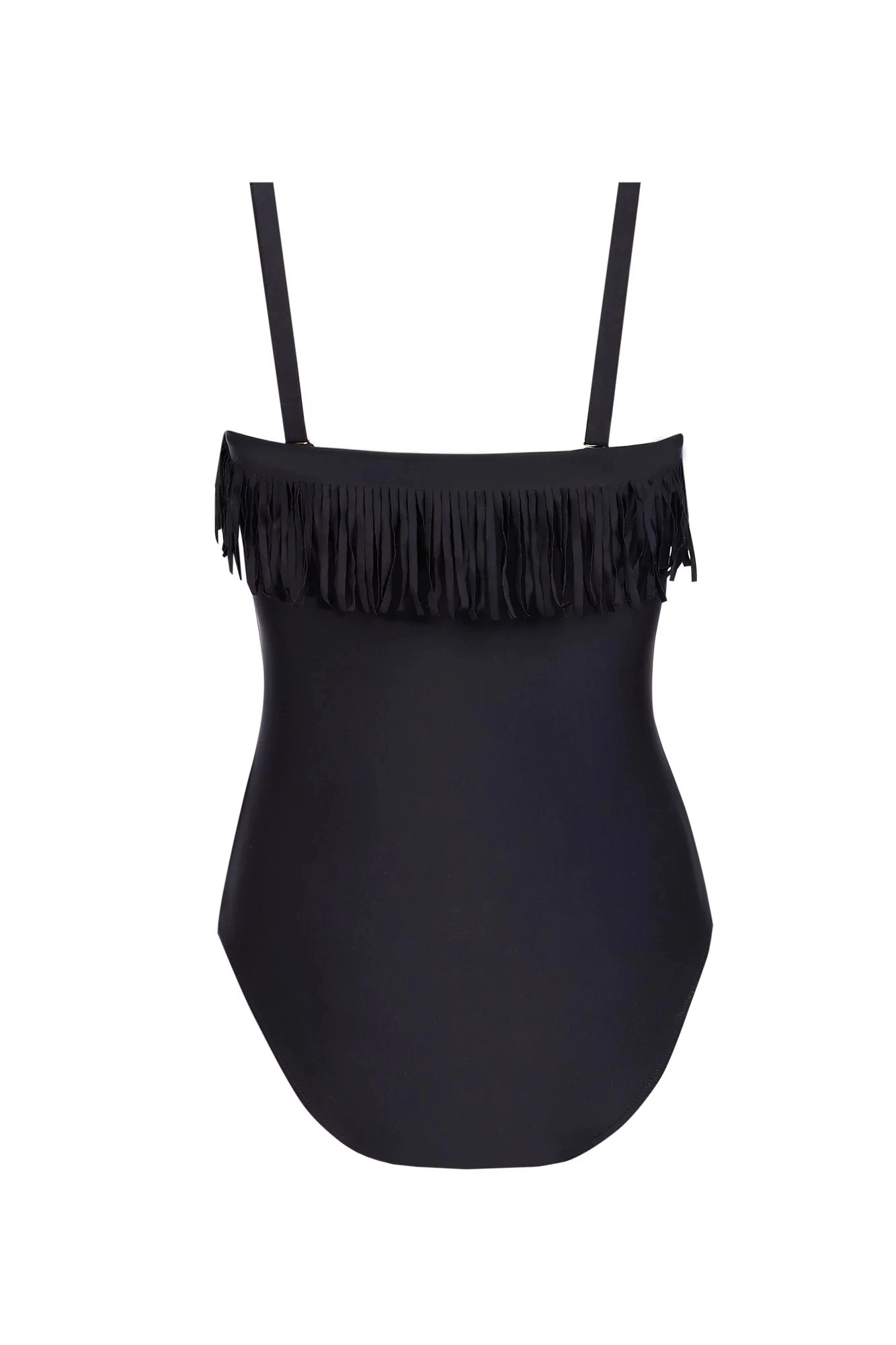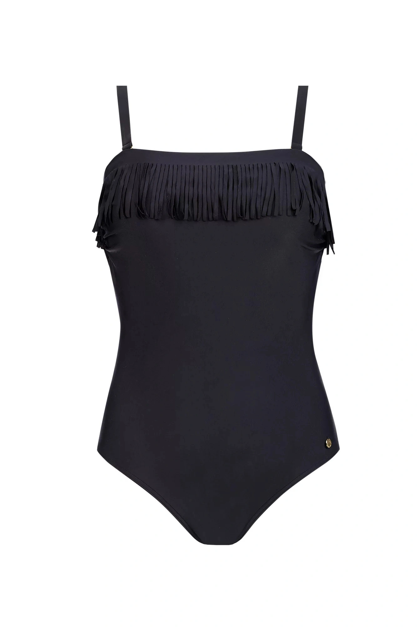 - hladké plavky s efektním třásňovým zdobením kolem výstřihu a zad
