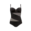 Plavky jsou vyrobené z jednobarevného hladkého mikrovlákna a sexy síťoviny. Košíčky jsou vyztužené a lehce nařasené. Spojení košíčků je ozdobené efektní přezkou. Délku ramínek je možné nastavit i odepnout.