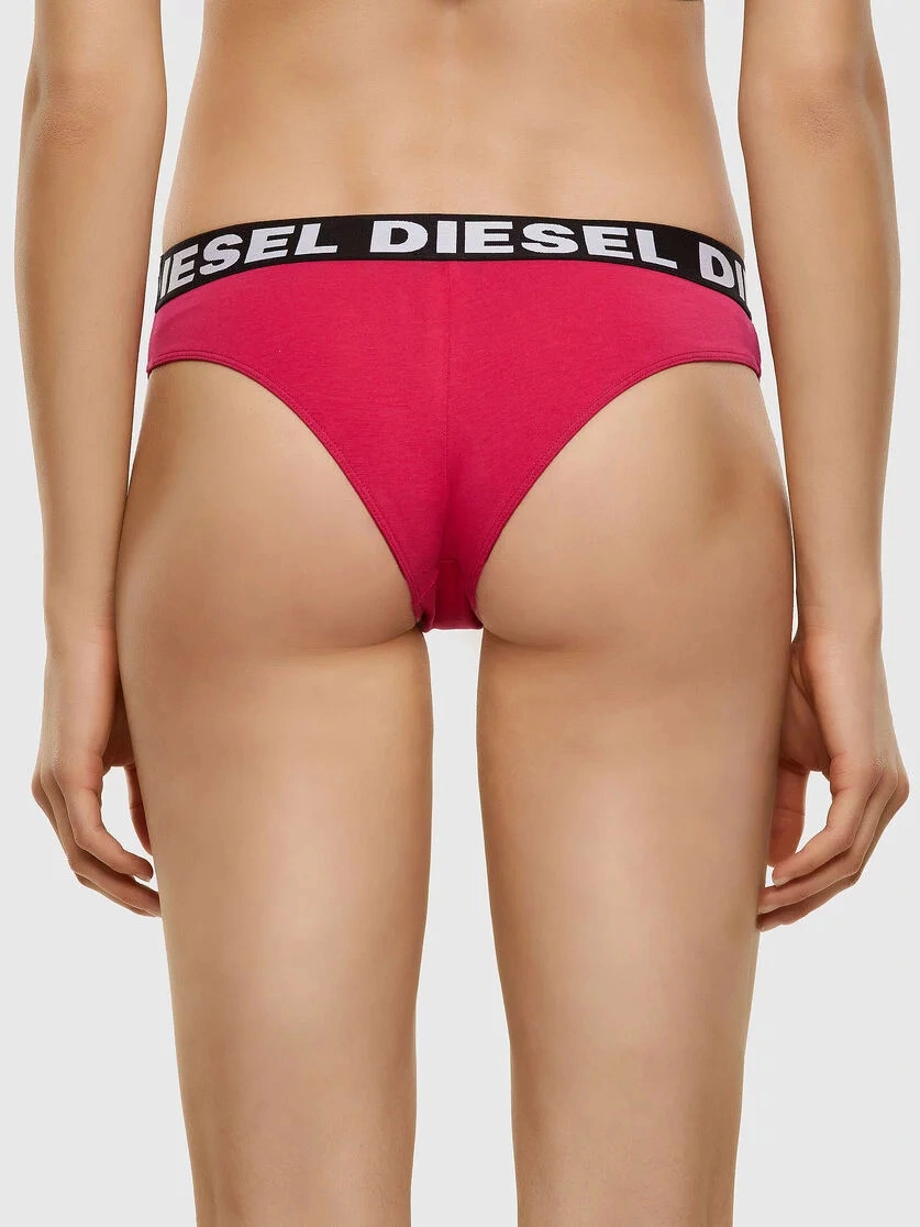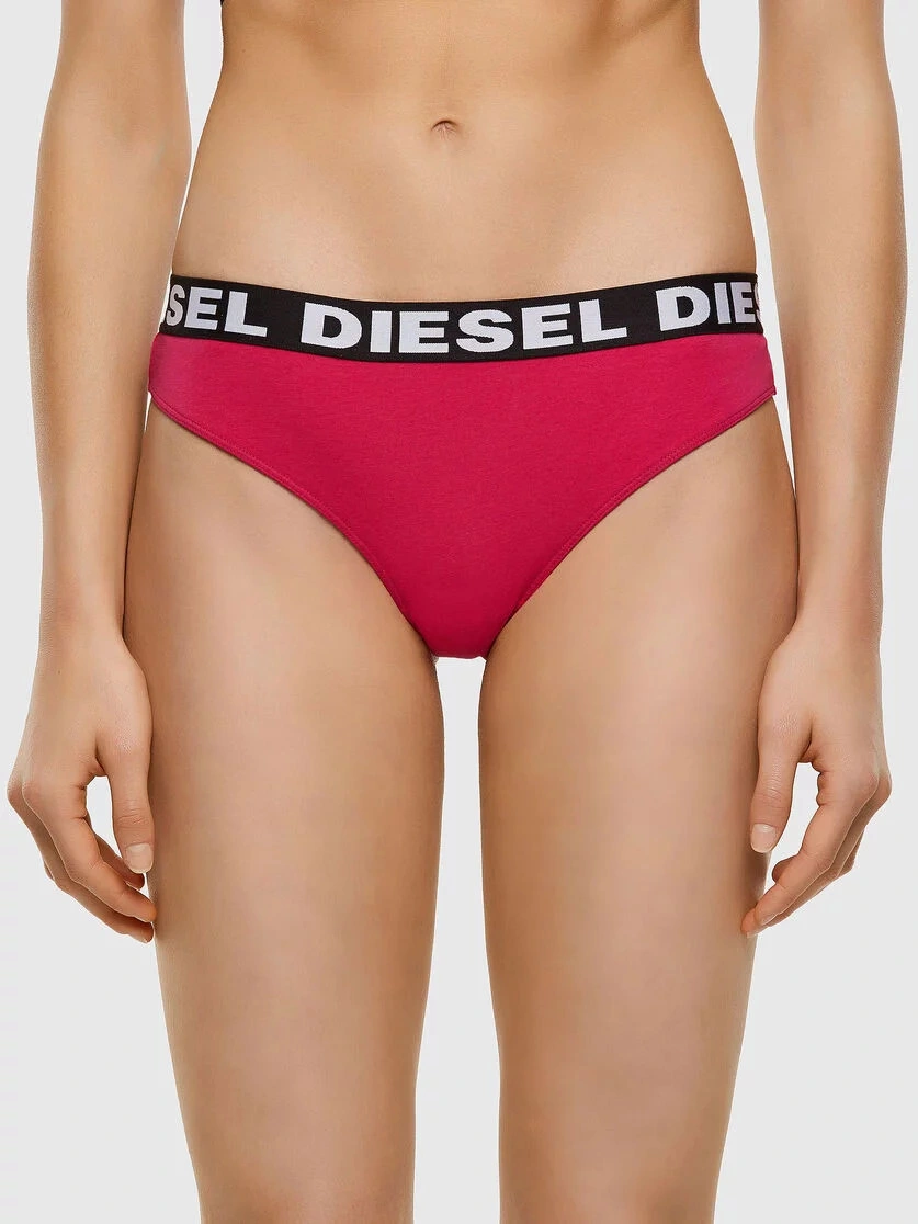 Růžové kalhotky značky Diesel s vyšitým bílým logem v pase.